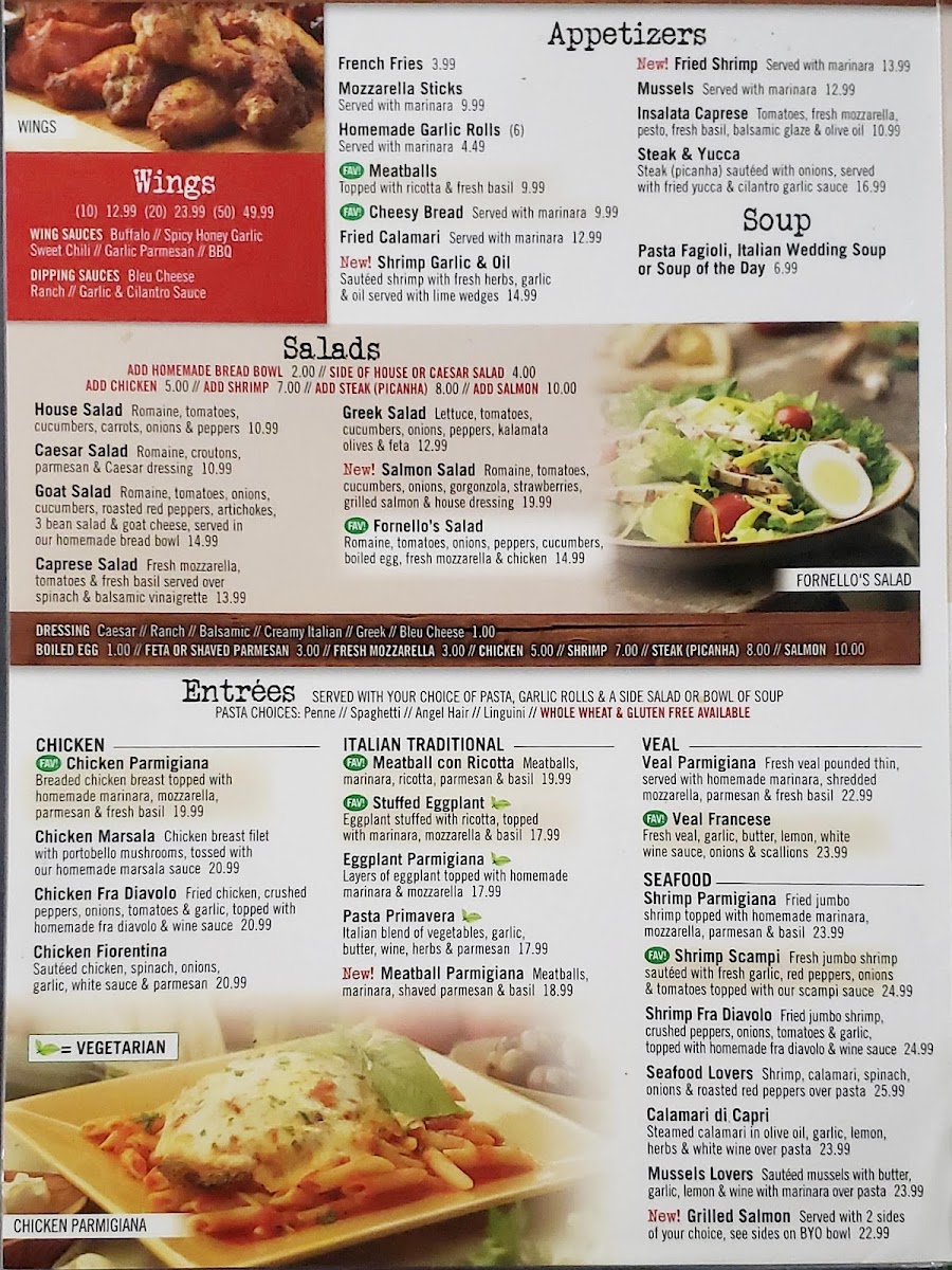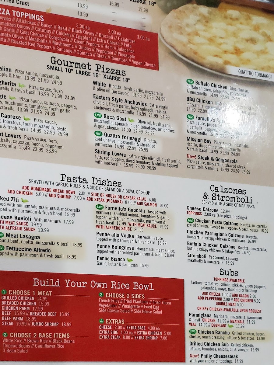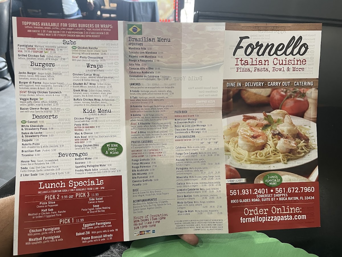 When you step into Fornello At Boca, you're welcomed by a menu that offers a delightful blend of traditional Italian flavors with a modern twist. Located at 8903 Glades Rd D7 in Boca Raton, FL, the restaurant boasts an array of mouthwatering dishes made from the finest ingredients. The Fornello At Boca Menu features everything from classic pasta options to expertly crafted pizzas, all prepared with an eye for detail and a love for great food. Whether you're craving a comforting bowl of risotto or a perfectly grilled steak, each dish is designed to impress with its fresh, bold flavors. Pair your meal with a selection from the carefully curated wine list for a truly satisfying dining experience. With its inviting atmosphere and carefully crafted menu, Fornello At Boca is the perfect spot for a casual meal or a special celebration.